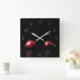 Relógio Quadrado Dois números de script de Cinza Cherries wca
