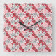 Relógio Quadrado Doodle Art Style Red Pink Roses Hearts Valentine's