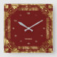 Relógio Quadrado Dourada Arte Deco Frame no Vermelho Escuro