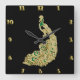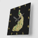 Relógio Quadrado Dourado e verde pavão brilhando intensamente