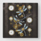 Relógio Quadrado Dragões-do-galho-do-mar em fundo listrado castanho