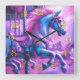 Relógio Quadrado Duro Pastel Desenho Tons Legal Carrossel Cavalo