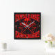 Caveira com guitarras cruzadas sobre fundo abstrato grunge. Inscrição em rocha duro para sempre.