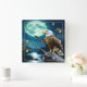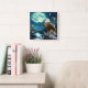 Relógio Quadrado Eagle Empoleirado Em Rock Baixo Da Lua Cheia