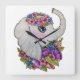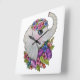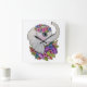 Relógio Quadrado Elefante De Aquarela Com Flores Selvagens