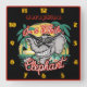 Um elefante jubilante em óculos de sol se coloca contra um fundo tropical vibrante, exuberando um espírito lúdico, com palmeiras formando uma atmosfera ensolarada cheia de alegria.