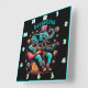 Um elefante vibrante enfeitiçado com um chapéu de topo enfia alegremente um violão, cercado por doces e balões girando, criando uma atmosfera festiva e encantadora num carnaval.