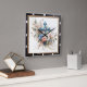 Este requintado relógio de parede quadrada mostra uma cruz azul-ornamentado e dourada em seu centro, cercada por um arranjo luxuoso e delicado de flores em tons suaves de rosa, azul e branco, entrelaçadas com folhagem graciosa. Esta elegante design cria uma mistura harmoniosa de fé e beleza natural para qualquer lar.