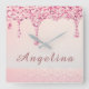 Adicione brilho e estilo ao seu espaço com este elegante relógio de parede quadrado para chá de noiva com brilho rosa e rendas com efeito de gotejamento. Com gotas de brilho falsas em rosa vibrante em cascata sobre um fundo suave e brilhante com um efeito de brilho radiante e orvalhado, este relógio traz um toque ousado e feminino para qualquer quarto. Um detalhe sutil de renda adiciona charme gracioso, tornando-o perfeito para um quarto glamoroso, escritório, dormitório ou espaço boutique. Personalize-o com um primeiro nome para criar uma peça decorativa única ou presente atencioso.