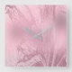 Relógio Quadrado Elegante rosa rosa rosa-rosa-rosa, brilho dourado