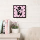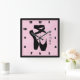 Uma ilustração de um par de calçados de balé/deslizadores pretos que estão nos dançarinos de balé clássicos e contemporâneos levanta acima nas pontas de seus dedos do pé, conhecidas como o pointe do en. O fundo é cor-de-rosa com as bolinhas brancas pequenas.