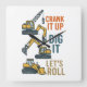 Máquina de construção divertida design com grua, escavadora e escavadora, ao lado das frases Crank It Up, Dig It, Lets Roll.