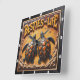This striking square wall clock features a highly dimensional, vibrant illustration of two sea turtles side-by-side. The entire design is rendered in bright orange, dark brown, and black tones, strongly suggesting a carved relief or Engraved Wood Look. The turtles have highly detailed, textured shells in orange and black, and are positioned on a textured tan sand backdrop. They are surrounded by a raised border of stylized, brown sand dunes. The large, three-dimensional embossed text "BESTIES FOR LIFE" is carved across the top. The clock face features a simple clock face border with large, white, numbered tick marks (1 to 12). The artwork is surrounded by a dark, textured decorative border that resembles a black wood frame.