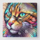 Relógio Quadrado Estilo de Vidro Obtido por Aquarela Cat II