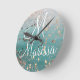 Relógio Quadrado Estrelas Douradas do Monograma no Teal