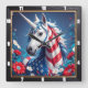 Relógio Quadrado Estrelas Patrióticas do Unicórnio Stripes Florais