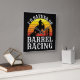 Presente de corrida de barril para cowgirl no rodeio ou no show ocidental. O design de pôr do sol retrorreflecta a cowgirl e a silhueta de cavalo