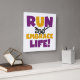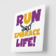 Se você gosta de correr, correr 5Ks, 10Ks, meia maratona, ou maratonas, você vai adorar este design de texto colorido em roxo e amarelo que lê Run and Embrace Life! Corra e Abraça Camisas de Vida, capuzes, ímãs, botões, cartões, adesivos, correntes-chave e muitos outros itens para corredores que adoram um design brilhante e colorido!