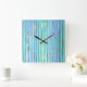 Relógio Quadrado Faixa Azul e Verde