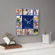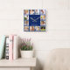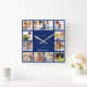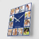 Relógio Quadrado Família 12 Fotos Colagem Madeira Azul