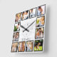 Relógio Quadrado Família 12 Fotos Colagem Madeira Branca