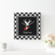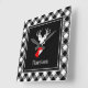 Relógio Quadrado Farmhouse Black White Xadrez Deer Personalizado
