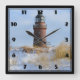 Relógio Quadrado Farol resistente numa costa rochosa no inverno