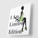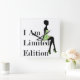A citação diz "Sou uma edição limitada." Uma silhueta de uma mulher na moda descansando sobre a citação completa a impressão da moda.