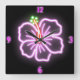 Relógio Quadrado Faux Neon Hibiscus Wall Clock