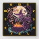 Relógio Quadrado Feiticeira fazendo poções sob a lua de cheio