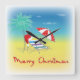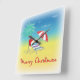 Relógio Quadrado Feliz Natal, Papai Noel, Palm Tree, Praia