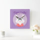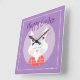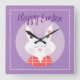 Um belo coelho branco, com nariz cardíaco e corações nos ouvidos, está vestindo uma camisa vermelha e marcada. Saudação: Felz pascoa enquadrado em lavanda e roxo.