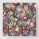 Relógio Quadrado Feriado de Motifs de Natal Roxo com Aquarela