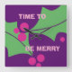 Relógio Quadrado Feriado Seja Feliz Rosa Púrpura Holly