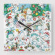 Relógio Quadrado Festa de Natal de Urso Polar e Pinguim de Desenho