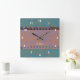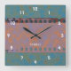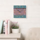 O design gráfico original moderno do HomeWare neste Relógio de Parede Quadrado foi feito a partir de uma digitalização de um filme de 35 mm. A fita se tornou um padrão de azuis e terracota mudos, com a parte da fita no topo se tornando uma cor iridescente de ferrugem, com realces azuis. O padrão de cor de fundo é constituído por azuis aqua mudos e castanhos de oliveira. No centro da design há um texto branco que diz "estúdio". Isso está definido para personalizar, usar como está ou excluir.