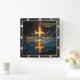This incredibly moving and symbolic design powerfully conveys the theme of Flame and Water—the spiritual cleansing and empowering baptism of the Holy Spirit. The artwork, featured on a square wall clock, displays a vivid cross made entirely of fire rising dynamically from dark, rippling water. The bright cross is beautifully reflected in the liquid below, emphasizing the depth and reality of the divine message from Matthew 3:11: "He will baptize you with the Holy Spirit and fire." The visual combination of fire and water symbolizes purification and the transformative power of faith. The highest quality print and artwork used on the surface is so exceptional it creates a stunningly realistic tactile illusion; you could easily mistake the textures for genuine embossed metal or heavy, worn leather. This piece is a spectacular dedication to faith and the power of the Holy Spirit. this impressive, high-quality piece is a perfect gift for any devoted person, honoring their spiritual journey.