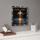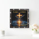 This incredibly moving and symbolic design captures the theme of Flame and Water—the powerful dual forces of spiritual cleansing and divine transformation. The artwork, featured on a square wall clock, displays a striking cross made of intense fire rising dynamically out of rippling blue water, symbolizing the message from Matthew 3:11: "He will baptize you with the Holy Spirit and fire." The visual juxtaposition of the element of fire and the cool blue water conveys the cleansing and empowering nature of the Holy Spirit. The highest quality print and artwork used on the surface is so exceptional it creates a stunningly realistic tactile illusion; you could easily mistake the textures for genuine embossed metal or heavy, worn leather. This piece is a spectacular dedication to faith and the power of the Holy Spirit. this impressive, high-quality piece is a perfect gift for any devoted person, honoring their spiritual journey.