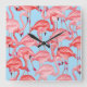 Relógio Quadrado Flamingos Rosa Brilhantes A Azul