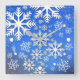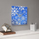 Relógio Quadrado Flocos de neve e estrelas Design azul e branco