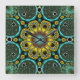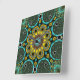 Relógio Quadrado Flor Fractal Azul e Dourada
