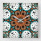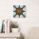 Relógio Quadrado Flor Fratural Verde Laranja e Verde-Teia