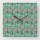 Relógio Quadrado Floral flamingo seamless pattern pink green
