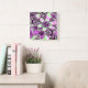 Relógio Quadrado Floral Fractal Bonito em tons de rosa e verde