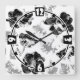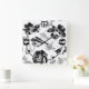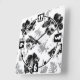 Relógio Quadrado Floral, preto e branco