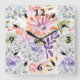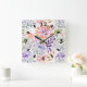 Relógio Quadrado Flores cor de água branca, rosa