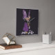Uma fada com belas asas roxas brilhando com luz estelar e vestindo um vestido roxo longo chega até a superfície para pegar flores em forma de estrela em um fundo estrelado de cinza escura. Seu longo e belo cabelo moreno castanho é adorado com flores brancas brilhantes como estrelas brilhantes. As flores têm um brilho mágico ao seu redor.