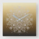 Relógio Quadrado Flores, Folhas, Palácio Branco, Mandala Dourado
