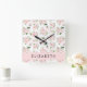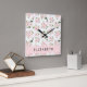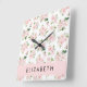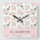Relógio Quadrado Flores, Rosas, Flores De Aquarela, Seu Nome