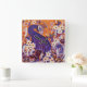 Relógio de Muro de Belas Artes com um pavão rodeado por flores em laranja, vermelho, roxo, branco. De uma pintura acrílica original de artista/vendedor. Decoração moderna e expressiva do lar que iniciará conversas. Excelente de presente para Dia de as mães, Dia da Amizade, ou mesmo para você!